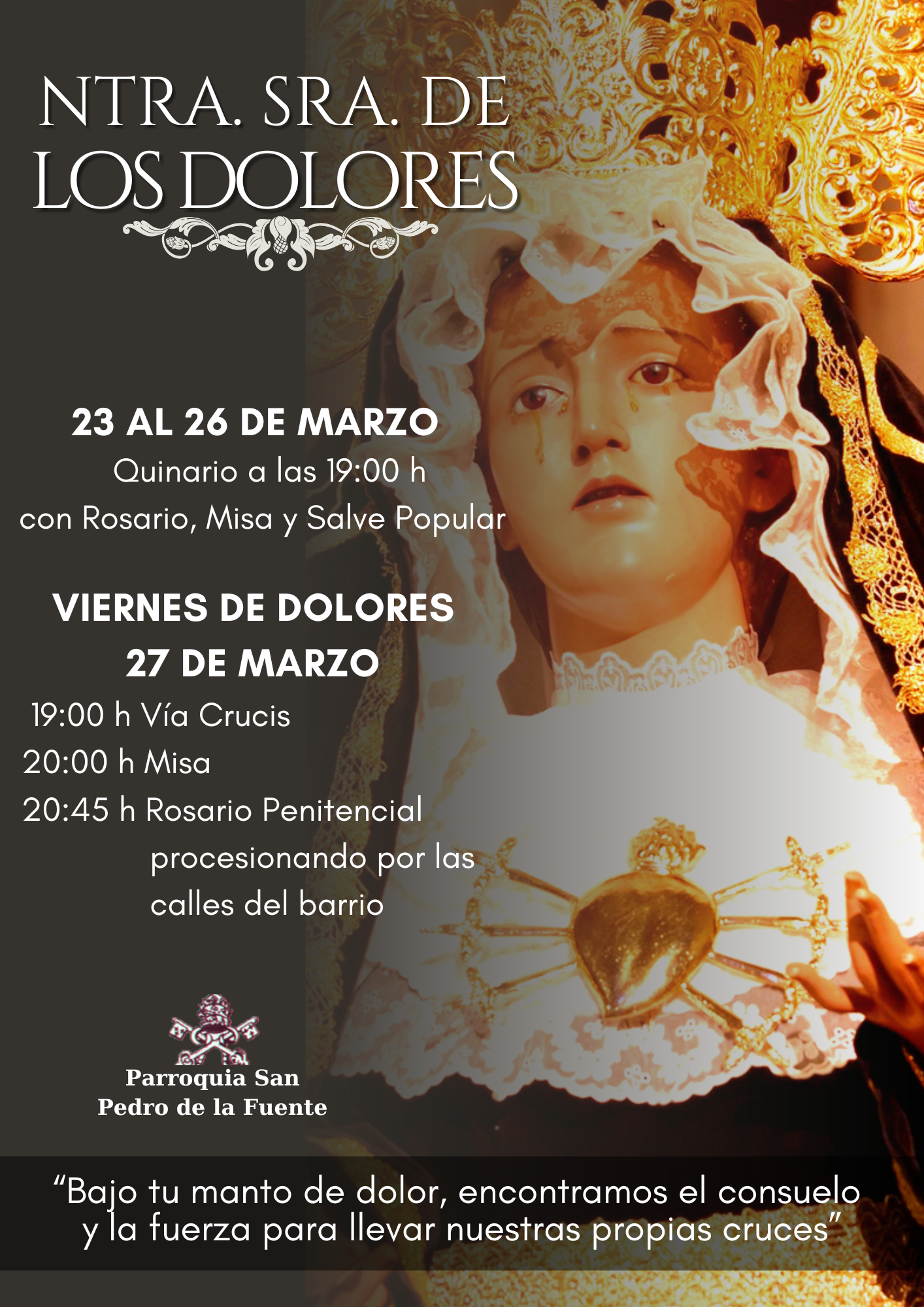 Últimas Noticias DEL AGUA DEL POZO AL «AGUA VIVA» “SE TRANSFIGURÓ DELANTE DE ELLOS…” ENTREGA DE CÁTEDRAS ‘2026’ Vigilia Fiesta de la Cátedra de San Pedro 2026 BIENVENIDOS PARROQUIA SAN PEDRO DE LA FUENTE
