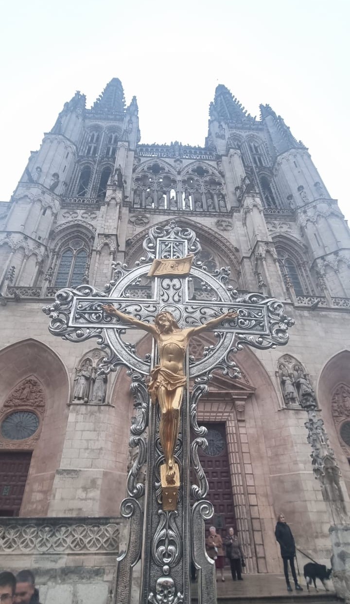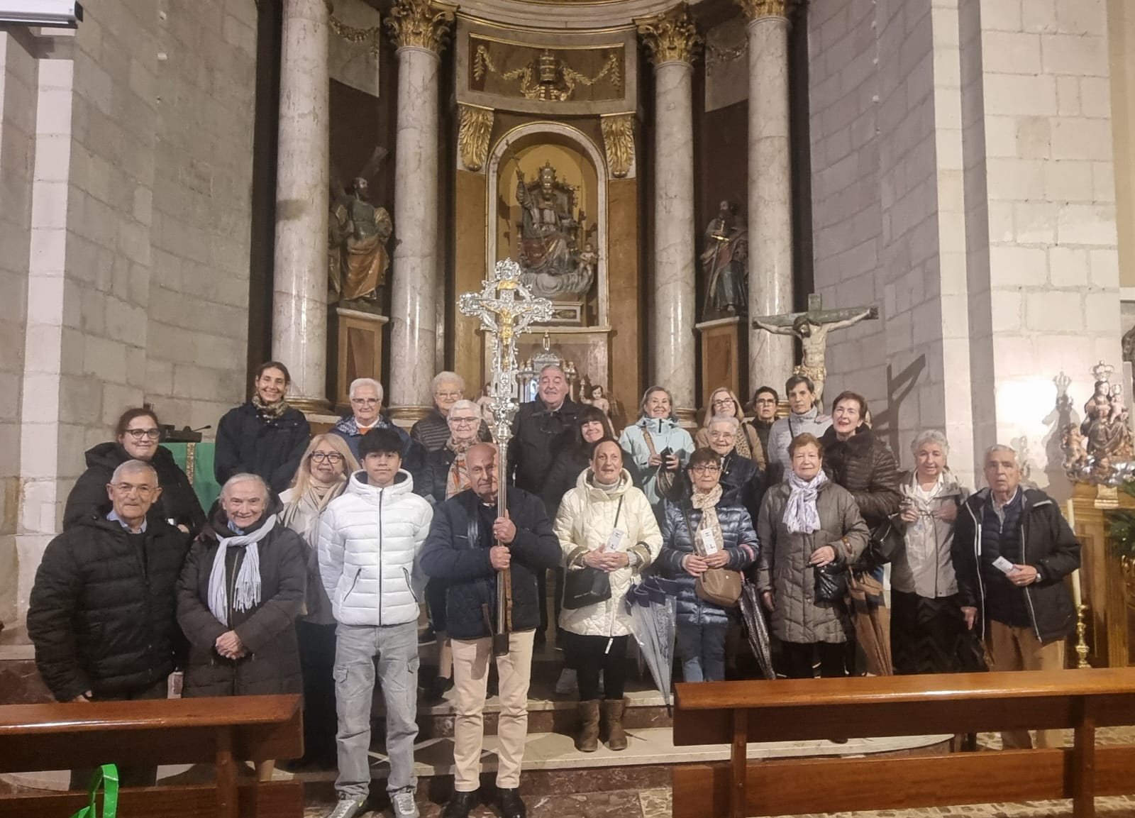 Con el permiso de la lluvia, portando la cruz de nuestra parroquia y vestidos con un pañuelo blanco han atravesado junto a otras 200 personas la Puerta Santa del perdón de la Catedral desde la Plaza de Santa María.